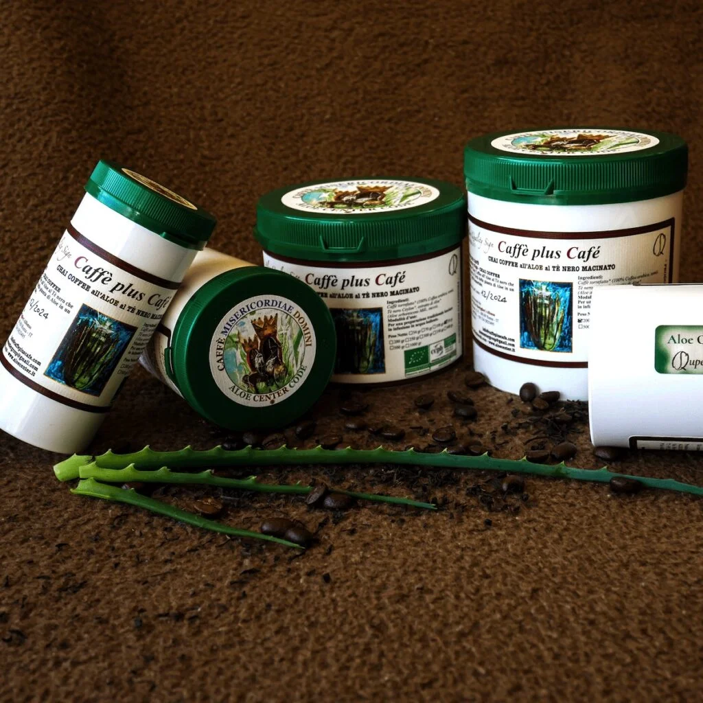 Caffè plus Café is characterized by the beneficial “draining action” of the Aloe Code which enhances the Aroma and purifies in three steps: